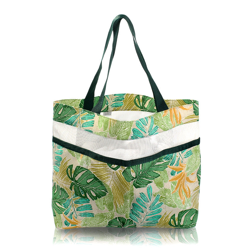 Perfect for a day at the beach or a swim at the pool.  Large enough to hold all your stuff, pretty enough to sit next to.